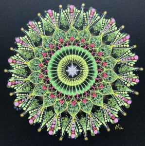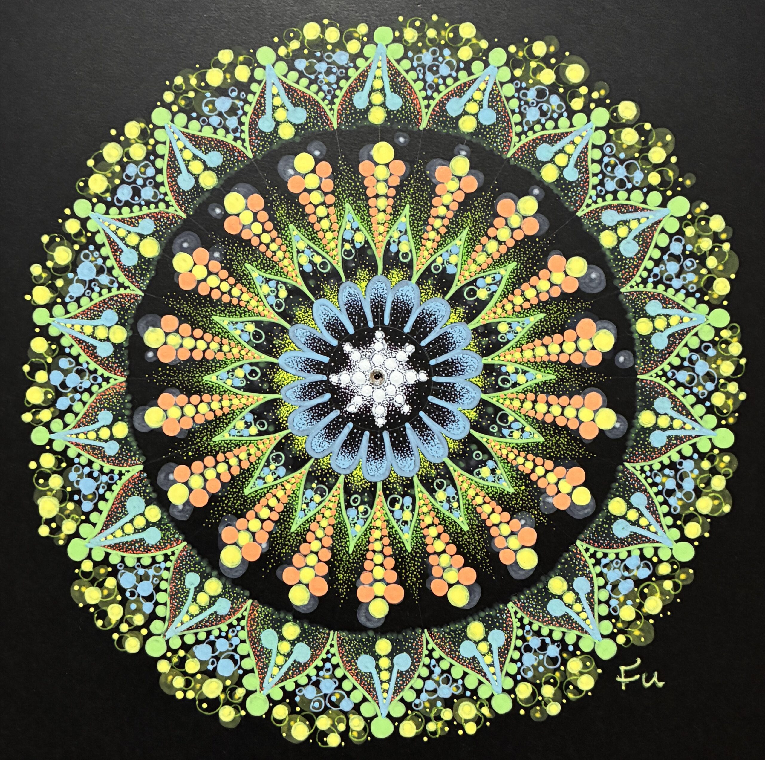 中心から等間隔に広がる対称性の美しさは、描く側にとっても深い瞑想のような効果があります。その中心に何を描くか、そこにアーティストの魂が宿るんです。