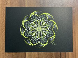 私はこの模様が大好きで、下絵を使って曼荼羅アートをたくさん描いています。