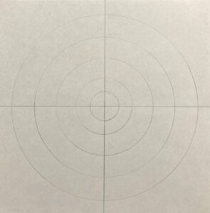 中心点を決め、コンパスで「1cm~2cm間隔」で同心円を描き、定規で放射状に線を引きます。