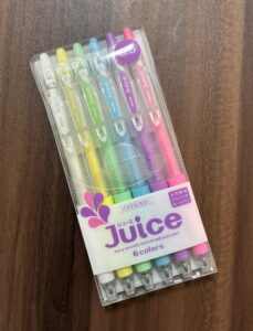 点描には、発色の良いゲルインクボールペンが最適です。三菱鉛筆の「シグノ」やパイロットの「ジュースアップ」、ゼブラ「サラサクリップ」などが定番ですが、ペン先の太さによってドットの表情が変わります。