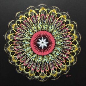 点描曼荼羅の美しさは、計算された幾何学模様と、そこに宿る職人技のような精緻さにあります。